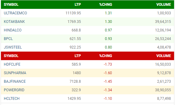 निफ्टी के टॉप गेनर्स और टॉप लूजर्स शेयर ये रहे